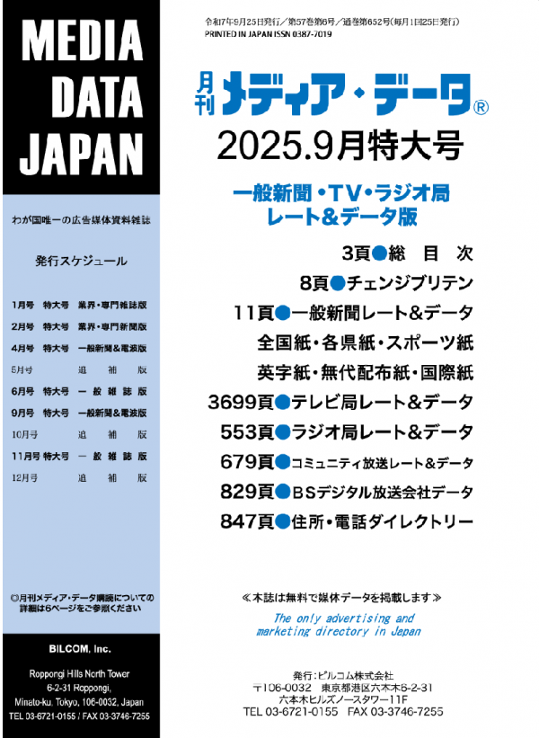 2025年9月25日、『月刊メディア・データ 新聞&電波(TV・ラジオ)版』2025年9月号を発行いたしました。